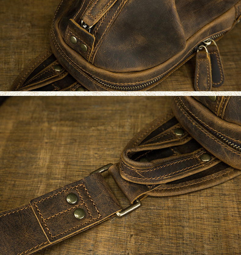 Men's Handmade Full-Grain Leather Sling Bag – Large-Capacity Chest Pack