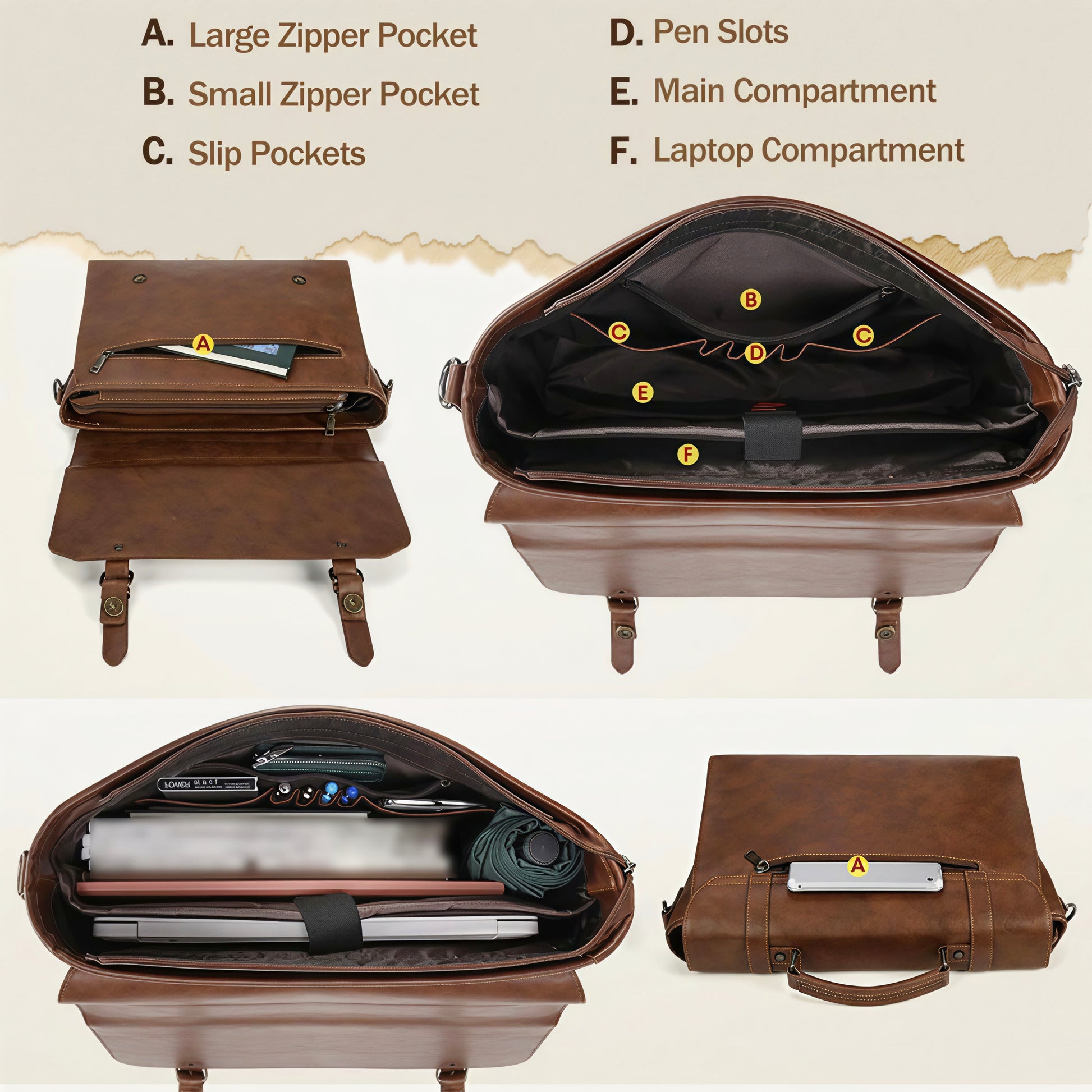 Meet the Homjou Leather Laptop Briefcase — where the charm of vintage style meets the strength of waterproof craftsmanship. Designed for men who value both confidence and practicality.