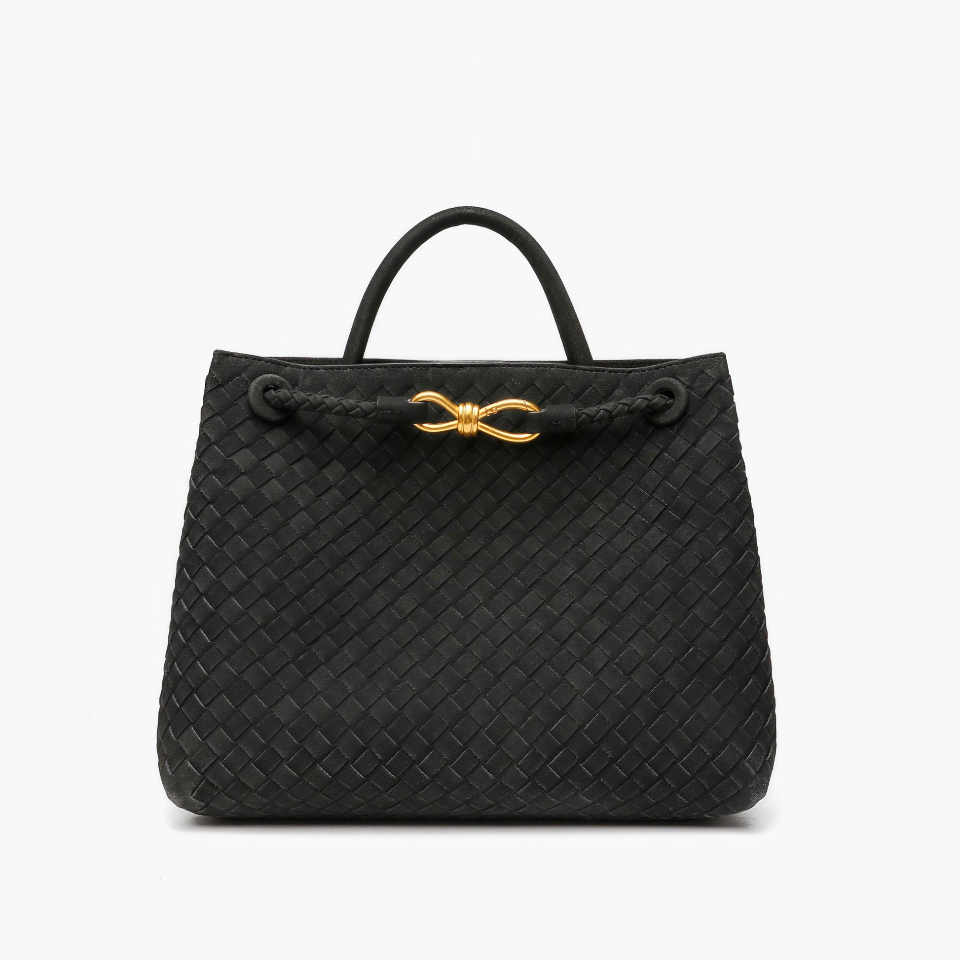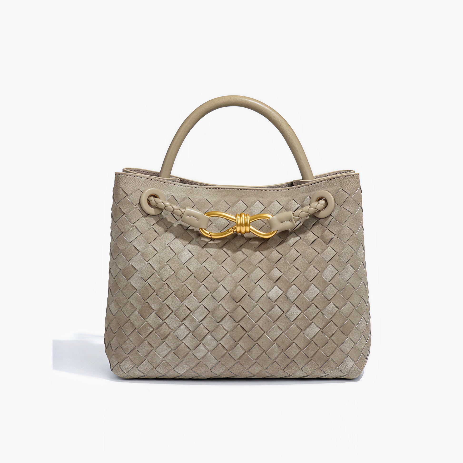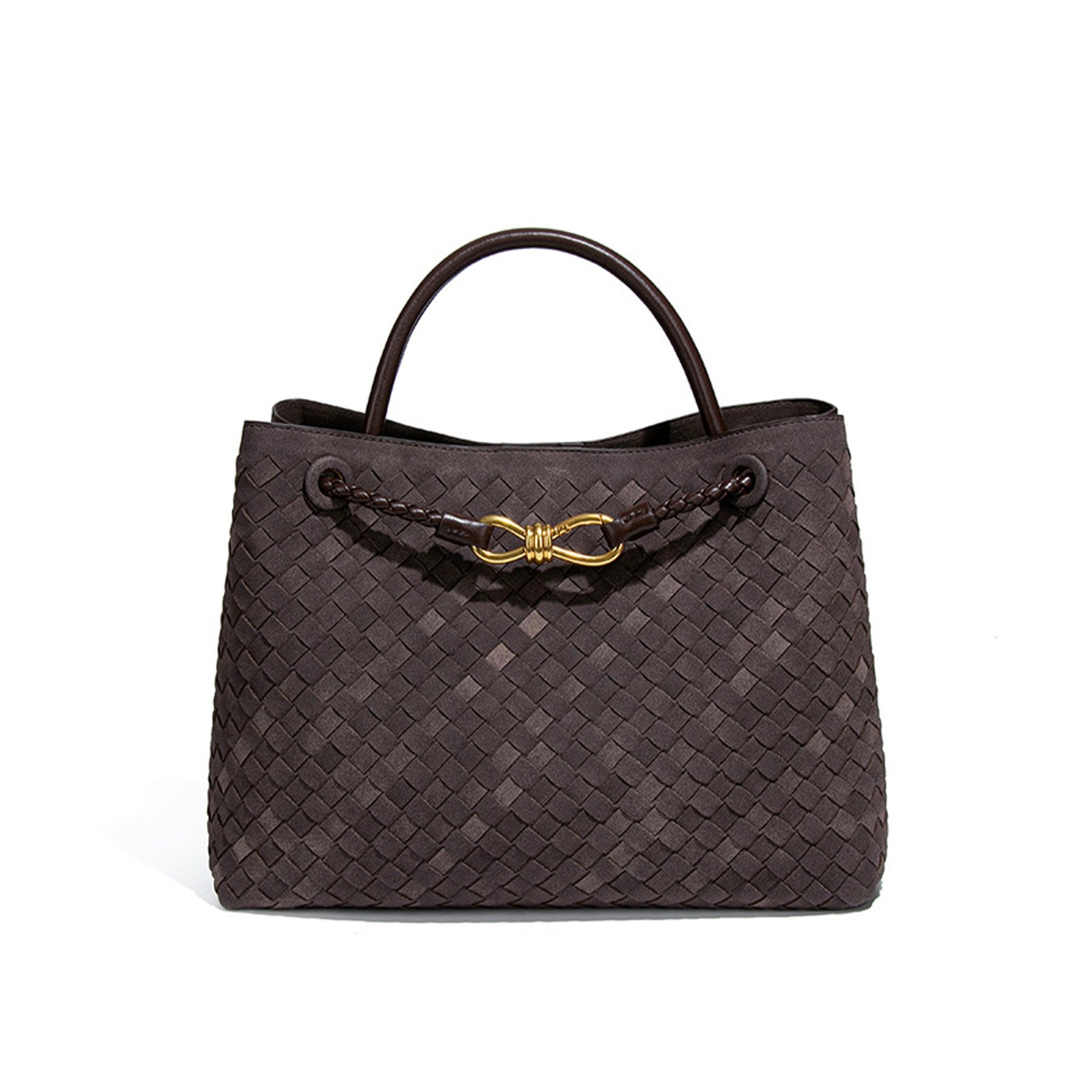 Pair it with cozy knits in winter or linen dresses in summer — this trendy woven tote bag transitions seamlessly across styles and seasons. Its compact shape and suede texture add depth and sophistication to every outfit.